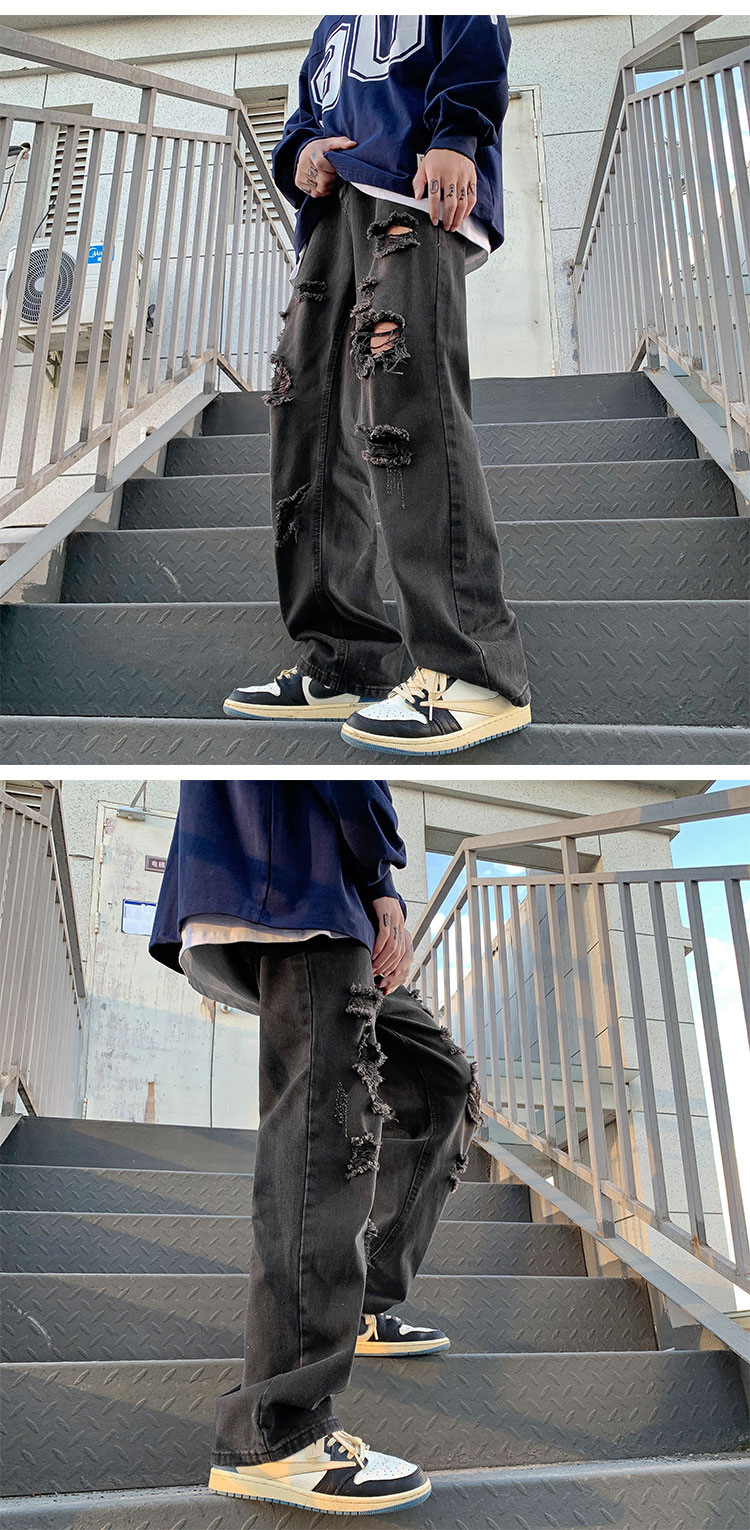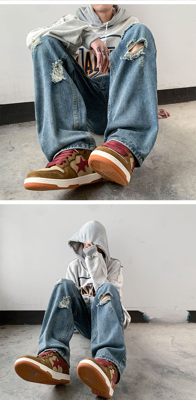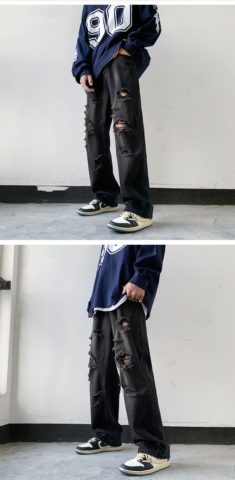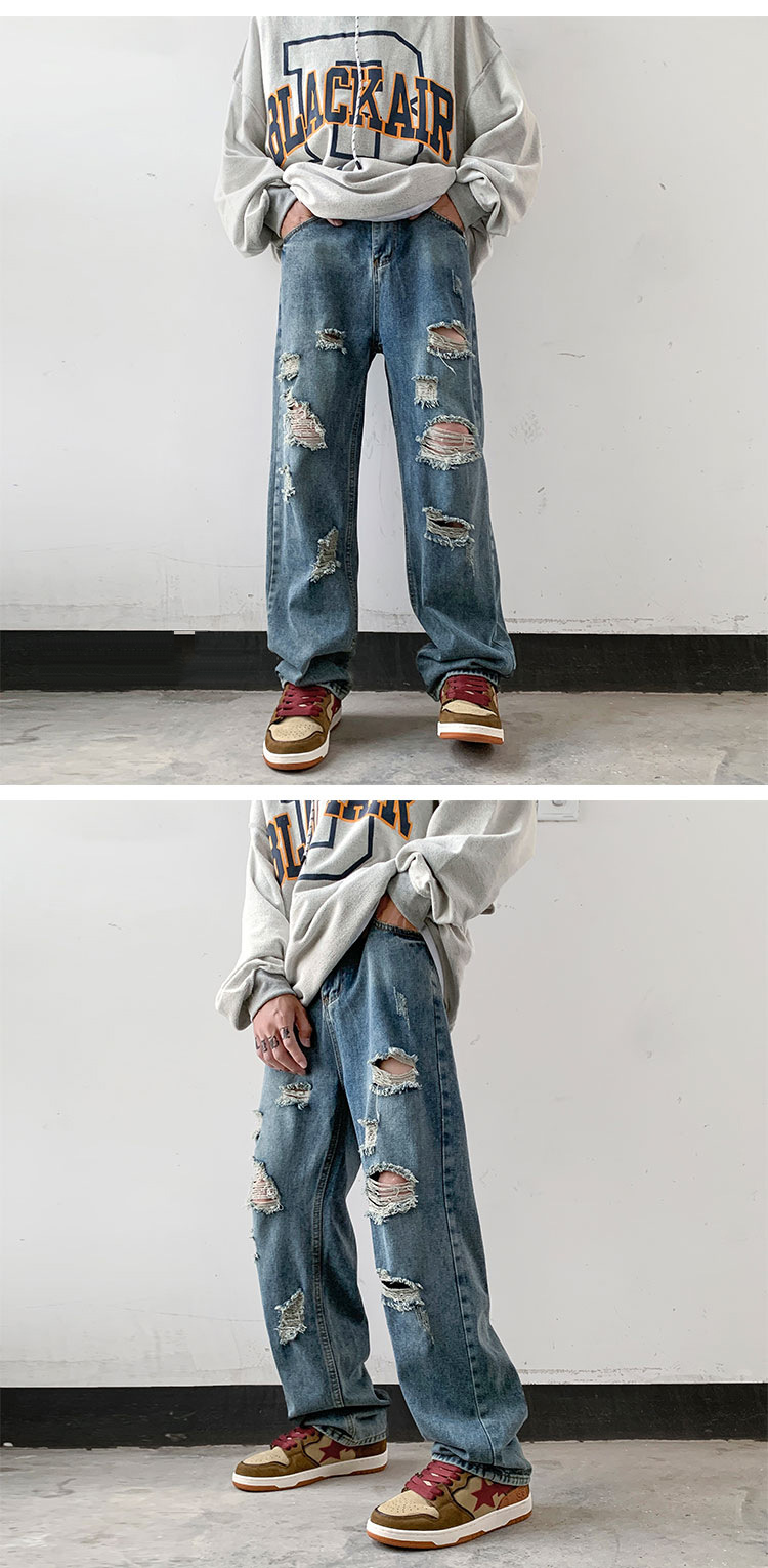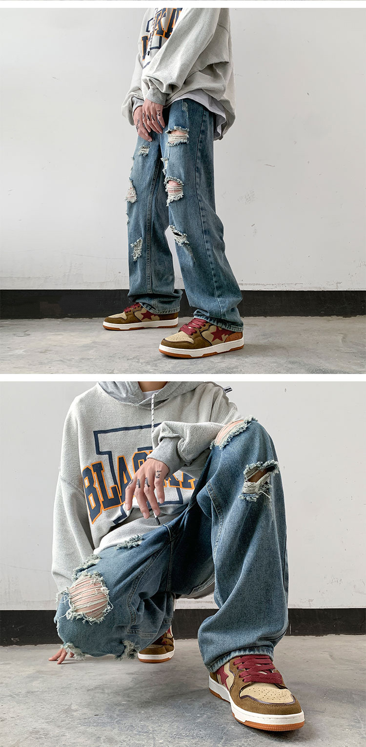 美式vibe風潮流帥氣街頭直筒破洞牛仔褲裝