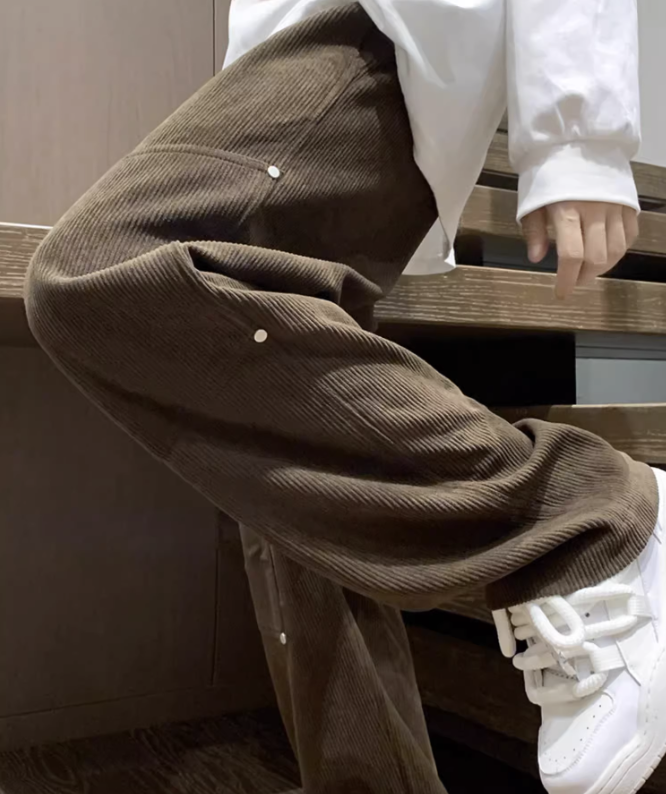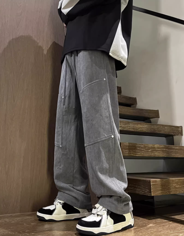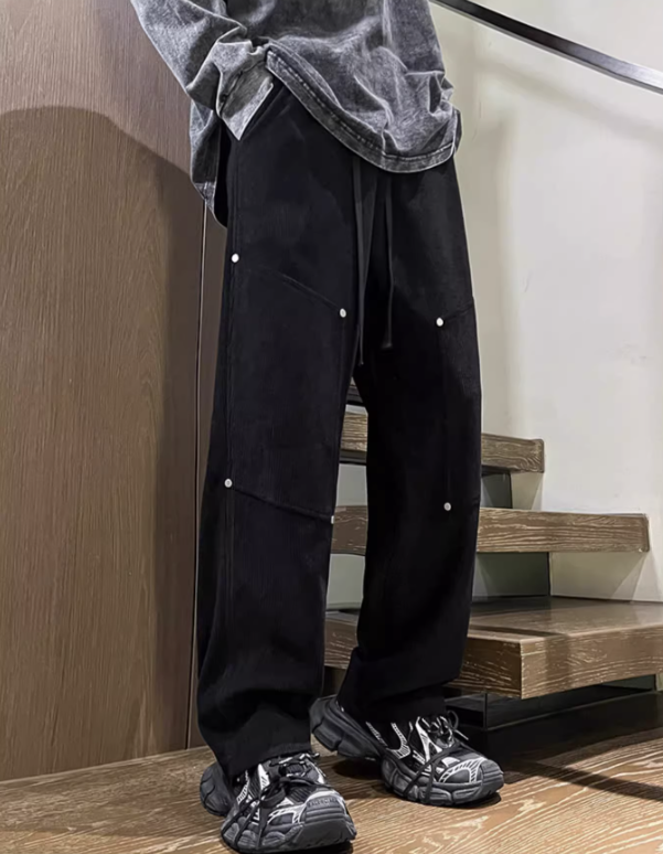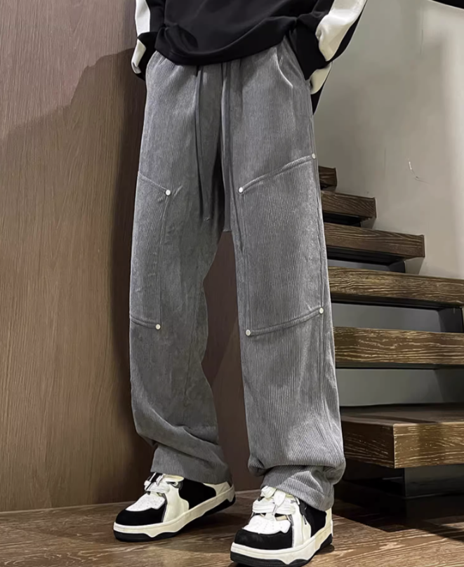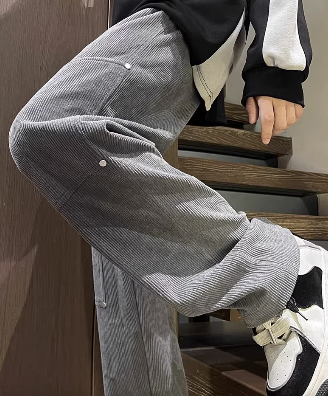 設計感潮流燈芯絨拖地潮流運動褲裝