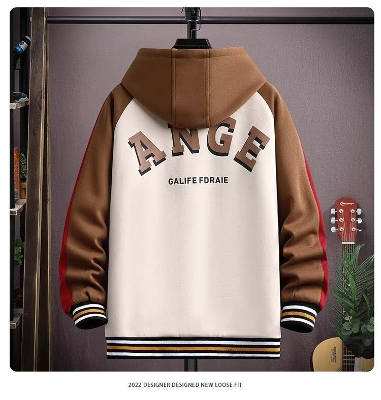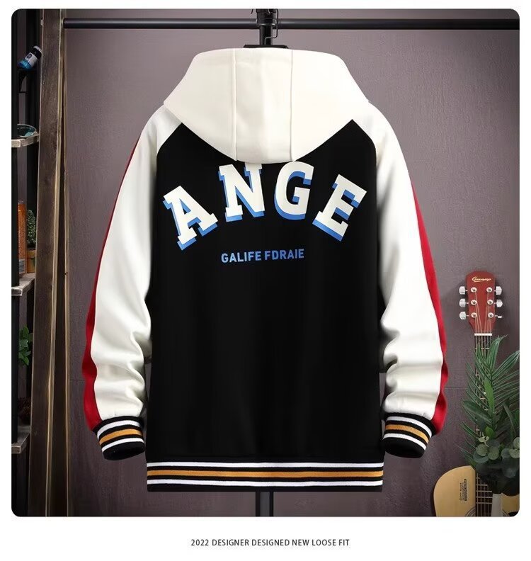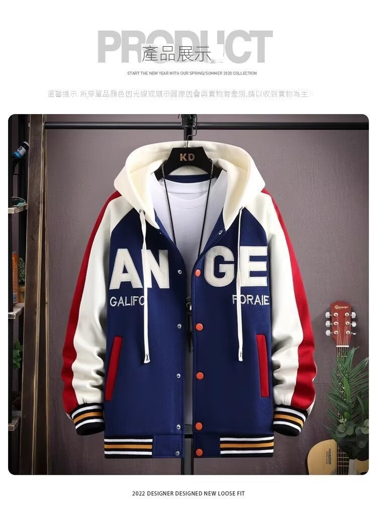 【單件/套裝】連帽帥氣潮牌夾克+百搭長袖T恤+撞色拼接工裝褲三件套套裝