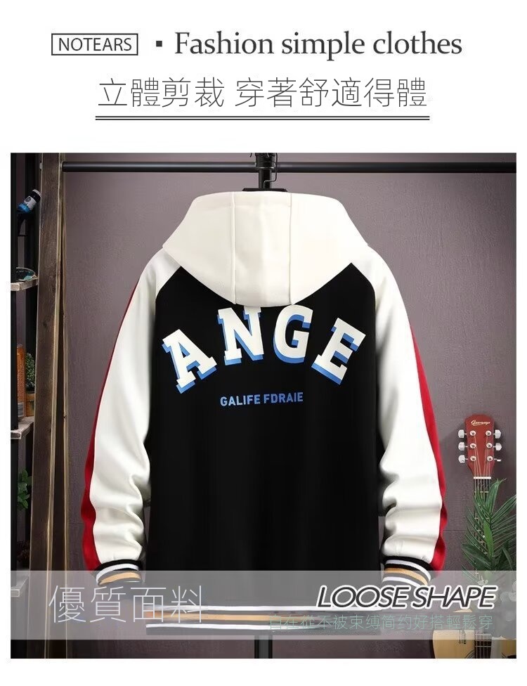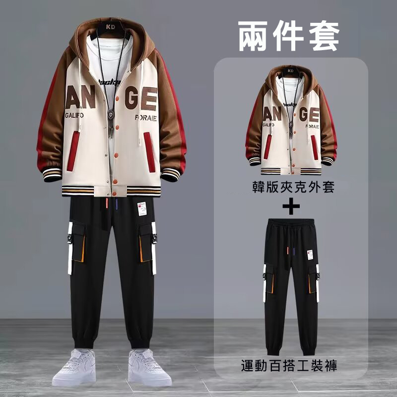【套裝】痞帥潮流連帽夾克+帥氣撞色束腳褲裝兩件套套裝