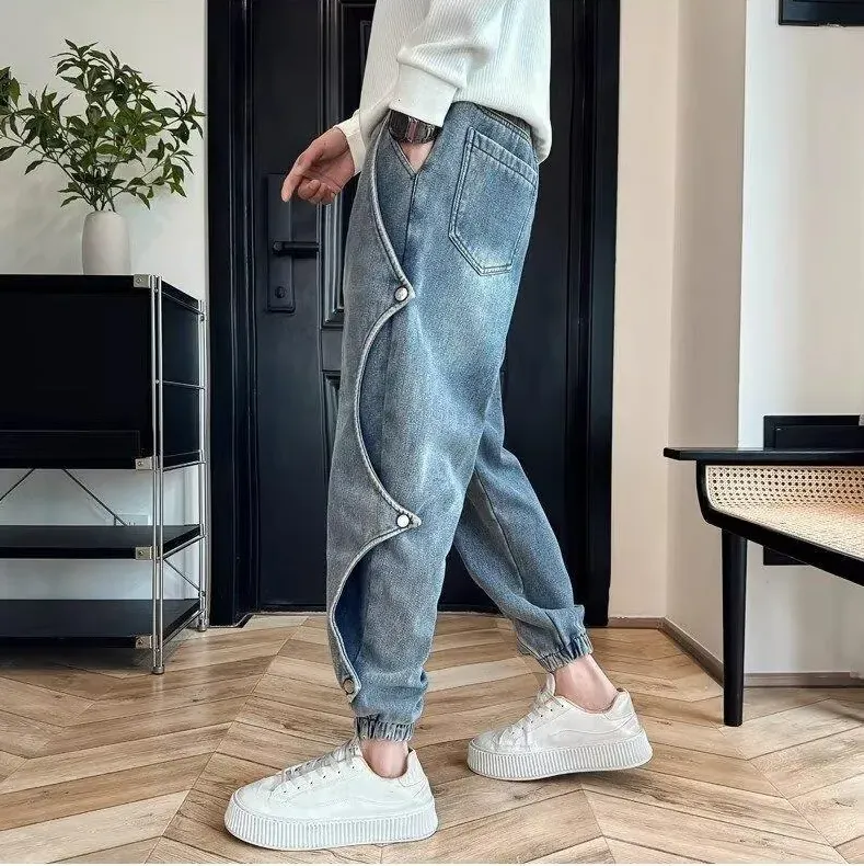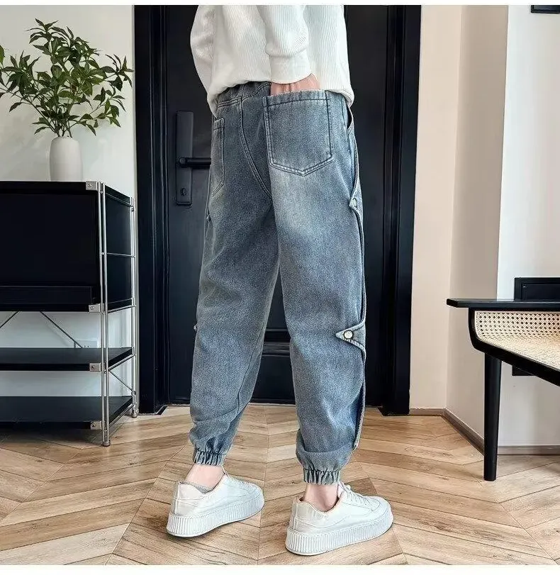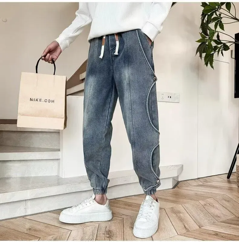 褲型:寬鬆型特殊工藝:水洗褲長:長褲腰型:中腰褲門襟:繫繩閉襟褲腳口款式:小直脚