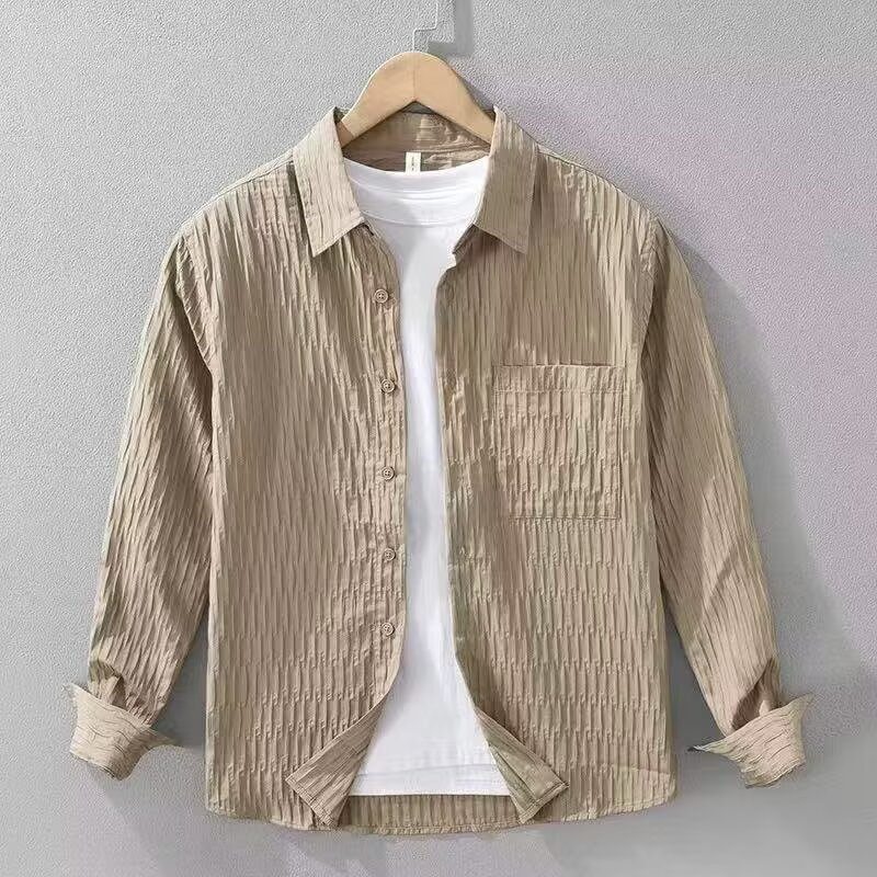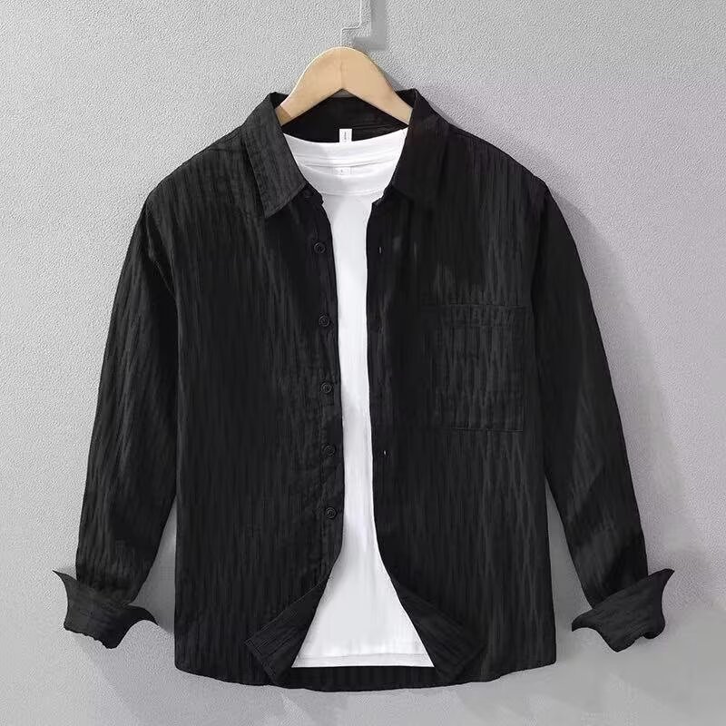 美式復古休閒長袖高級純色寬鬆外套襯衫