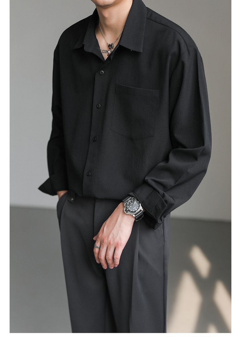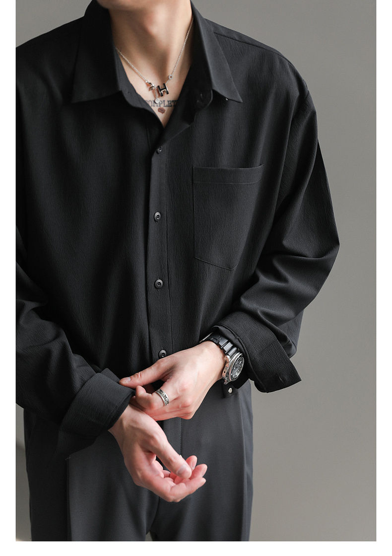 【款式】開衫【版型】寬鬆型【領型】翻領【袖長】長袖【圖案】純色【厚薄】普通【款式細節】口袋裝潢