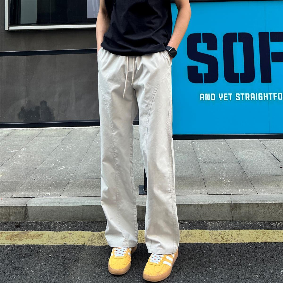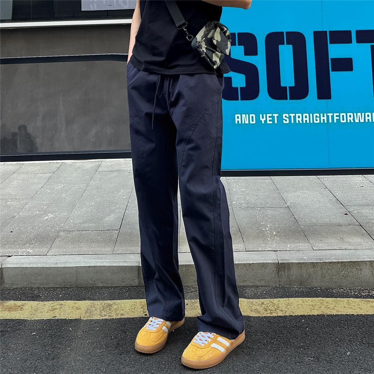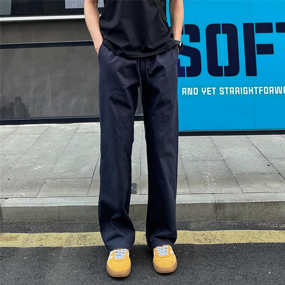 百搭斜切薄款顯高顯瘦涼感直筒休閒褲裝