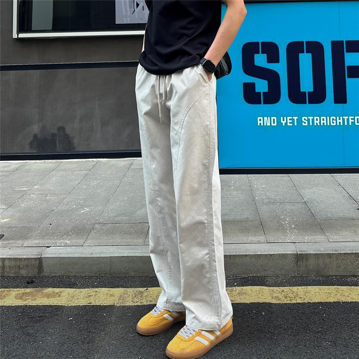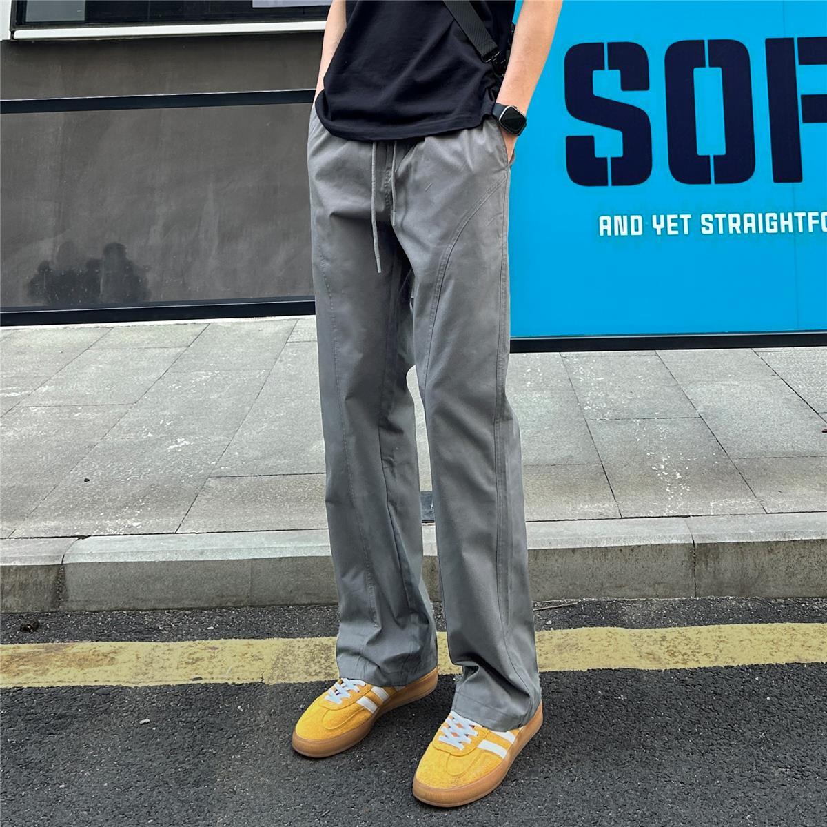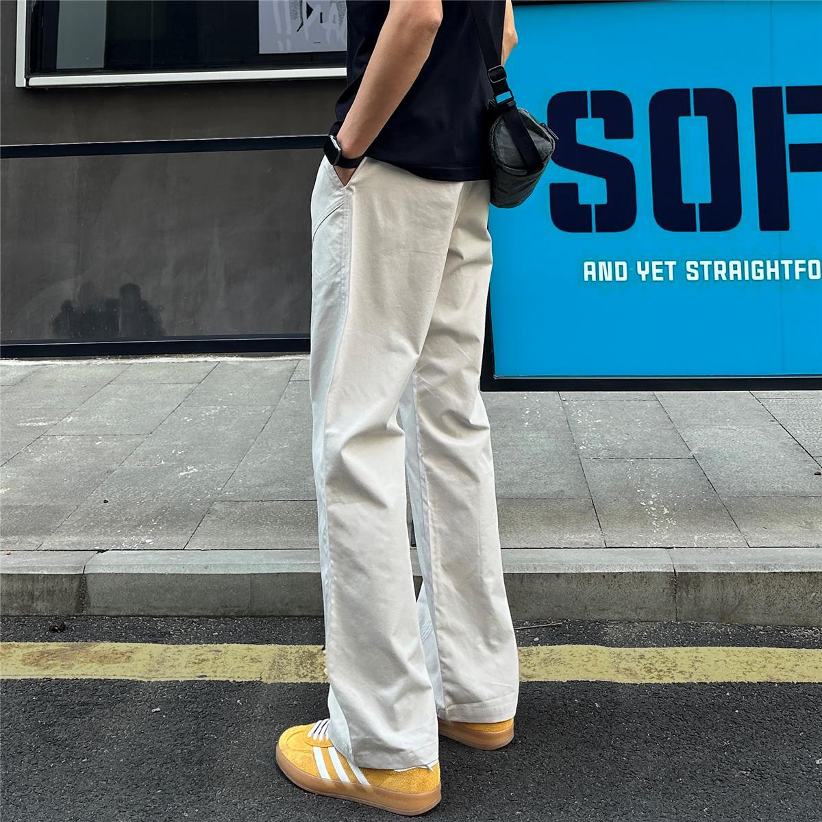 百搭斜切薄款顯高顯瘦涼感直筒休閒褲裝